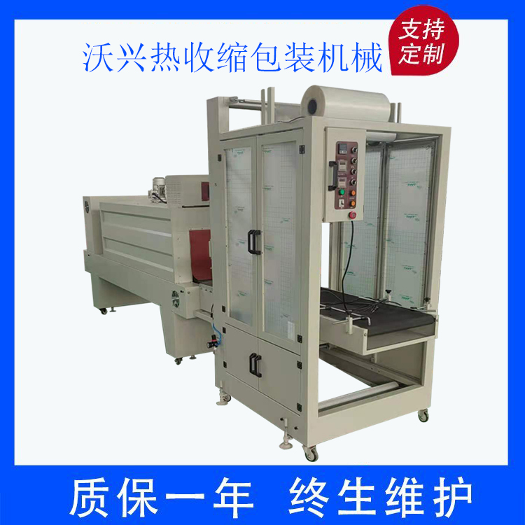 自動熱收縮包裝設備采用恒溫加熱技術,與收縮爐配合使用,使收縮爐內溫度達到一定的溫度,再加熱收縮膜;產品包裝時,然后用封口刀將收縮膜加熱,然后放入恒溫箱內處理,使產品達到平整美觀的效果。